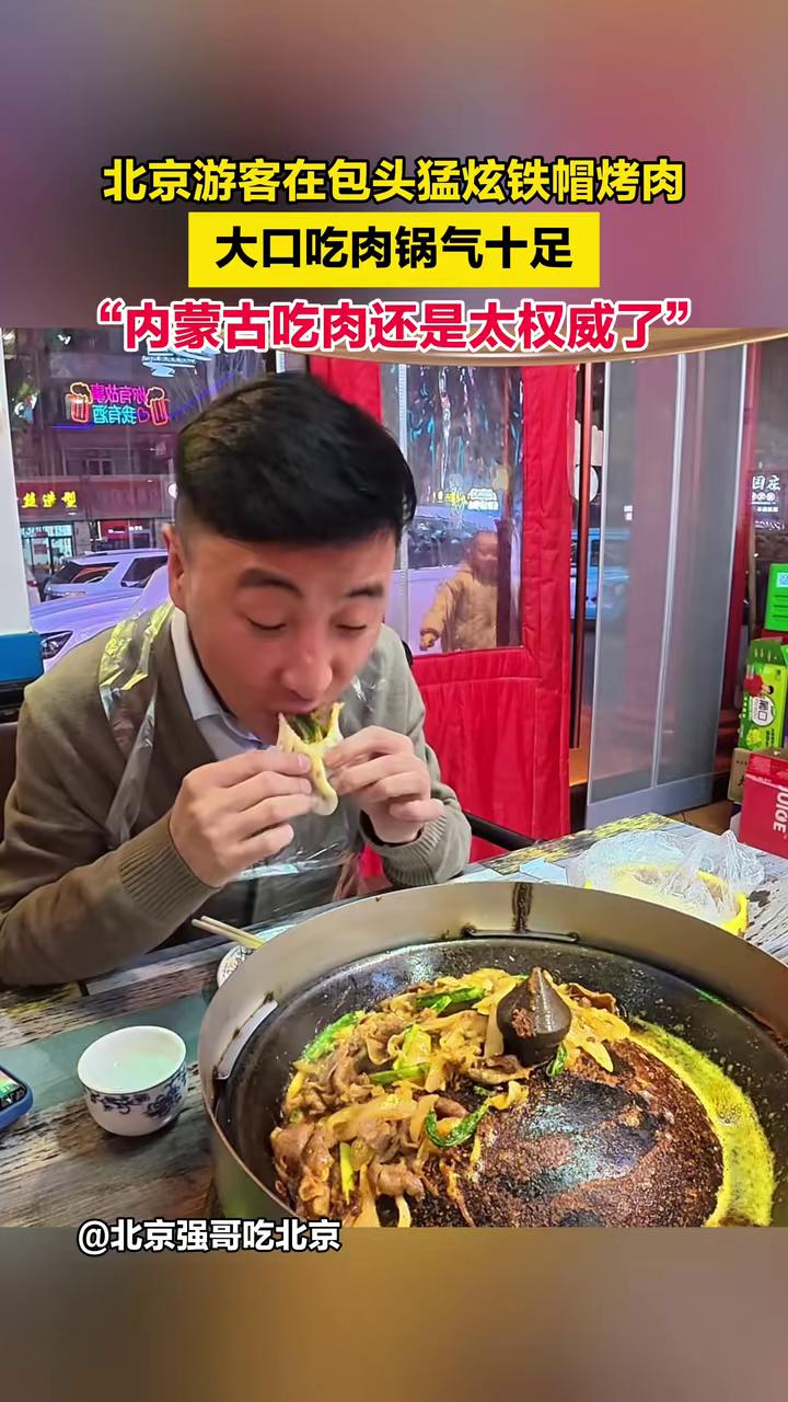 北京游客在包头猛炫铁帽烤肉,大口吃肉锅气十足